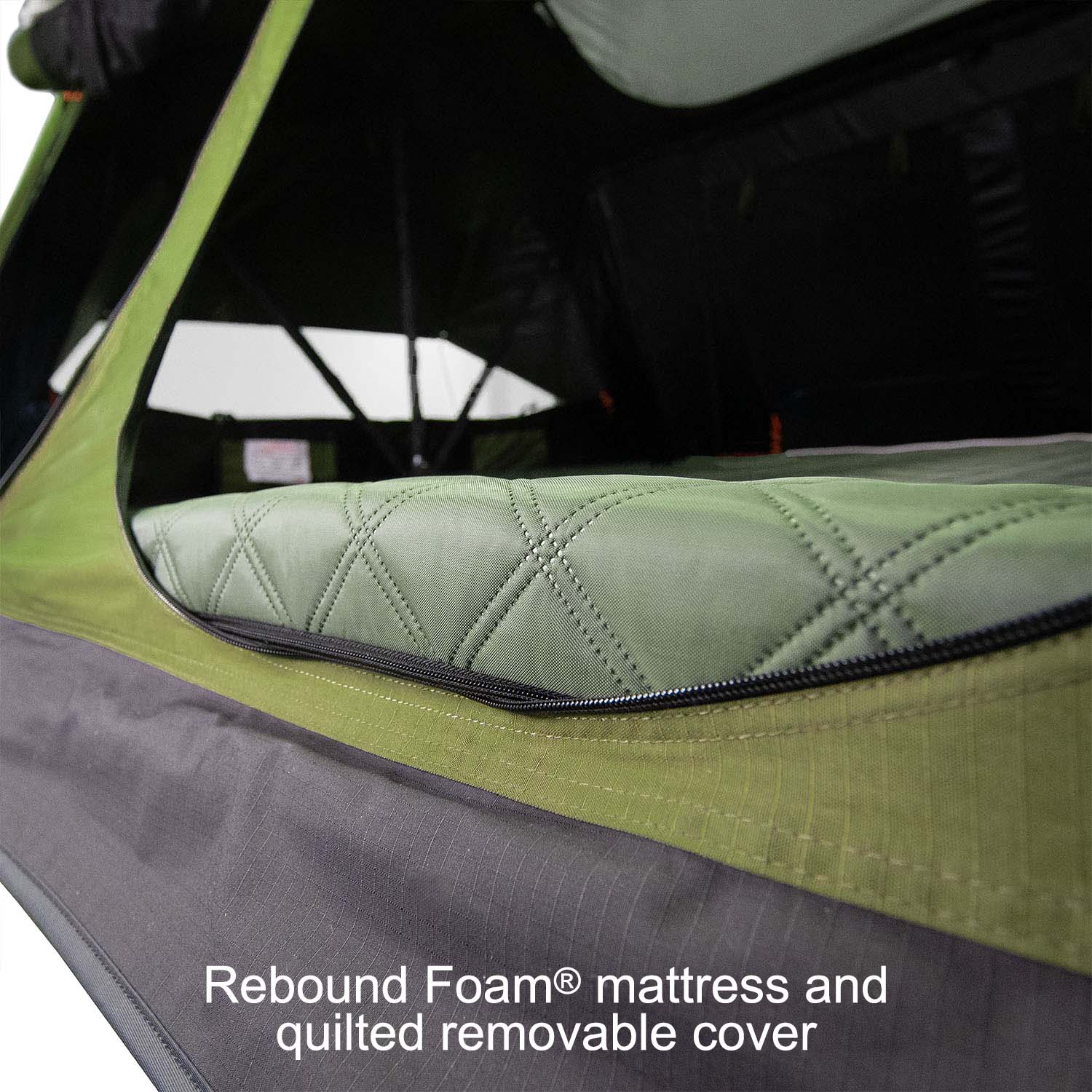 • Windows: Dual-layer mesh and solid panels with oversized roof windows