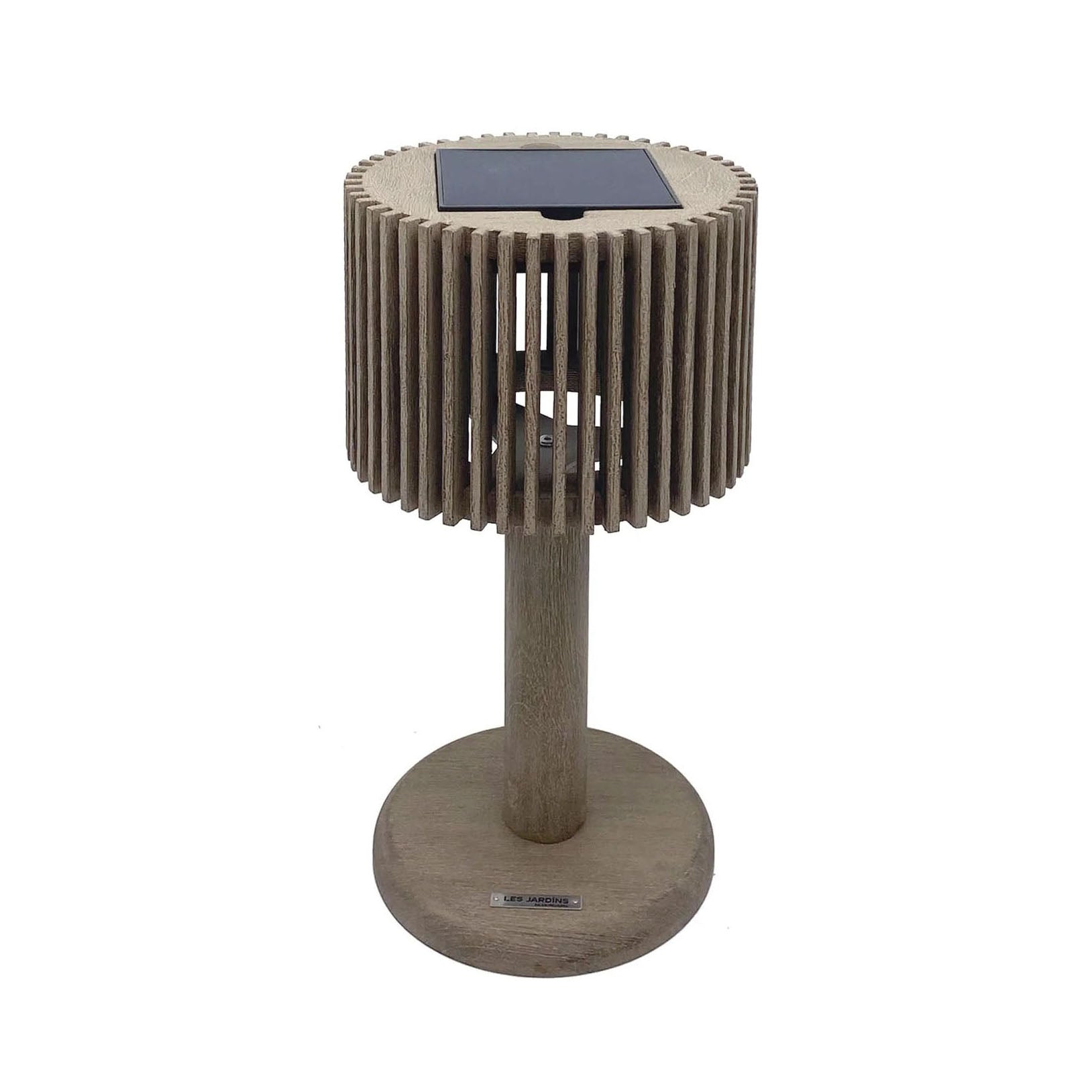 The Pixy Solar Outdoor Table Lamp by Les Jardins brings a refined, architectural presence to both indoor and outdoor spaces. Crafted in Weathered Teak, its sculptural silhouette diffuses light softly, creating a warm and intimate atmosphere ideal for terraces, patios, balconies, and dining tables.